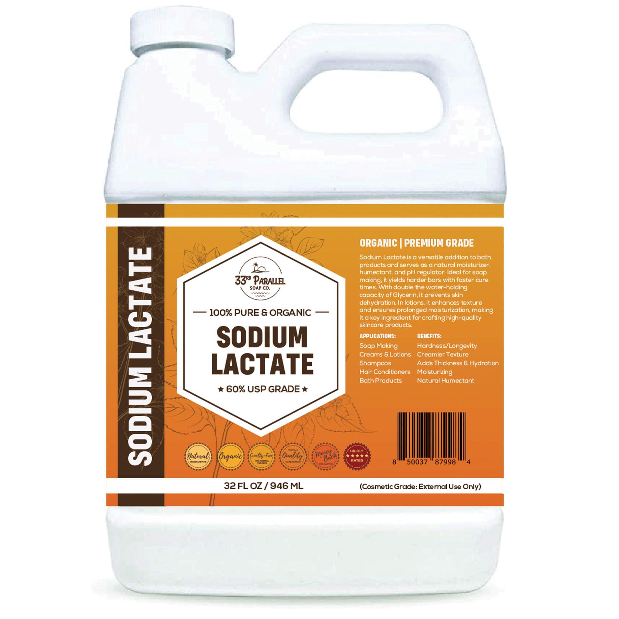 - PREMIUM COSMETIC GRADE & SATISFACTION GUARANTEED: 33rd Parallel Soap Co supplies bulk Sodium Lactate to premium cosmetic brands and we stand behind the purity and quality of every product we sell. Enjoy our high quality RESEALABLE PACKAGING!