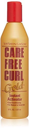 Activates and moisturizes in one easy step. Restores curls, smoothes hair and adds sheen. Leaves hair feeling silkier and looking livelier, never greasy or stiff. For natural or curly hair Restores curls and smoothes hair Never greasy or stiff We believe in beauty without compromise Apply small amount of Care Free Curl Gold Instant Activator with Silk Moisturizers to palm of hand. Rub hands together, then apply evenly over entire head. Massage thoroughly. Gently comb or pick through hair to evenly distribute and detangle. Style as usual. HAIR IS FLAMMABLE. KEEP HAIR AWAY FROM OPEN FLAME, LIT TOBACCO PRODUCTS, FIRE OR SPARKS. PRODUCT BUILD-UP CAN INCREASE THE RISK OF FLAMMABILITY. SHAMPOOING FREQUENTLY CAN REDUCE THIS RISK. KEEP OUT OF REACH OF CHILDREN.