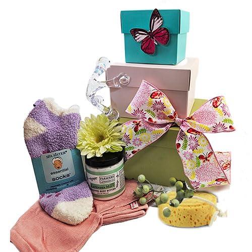 Send this indulgent towering spa experience right to their door with exquiste scents of lavender. Theyll discover moisturizing spa treatment socks, nourishing lavender body butter and more with each box thet open.