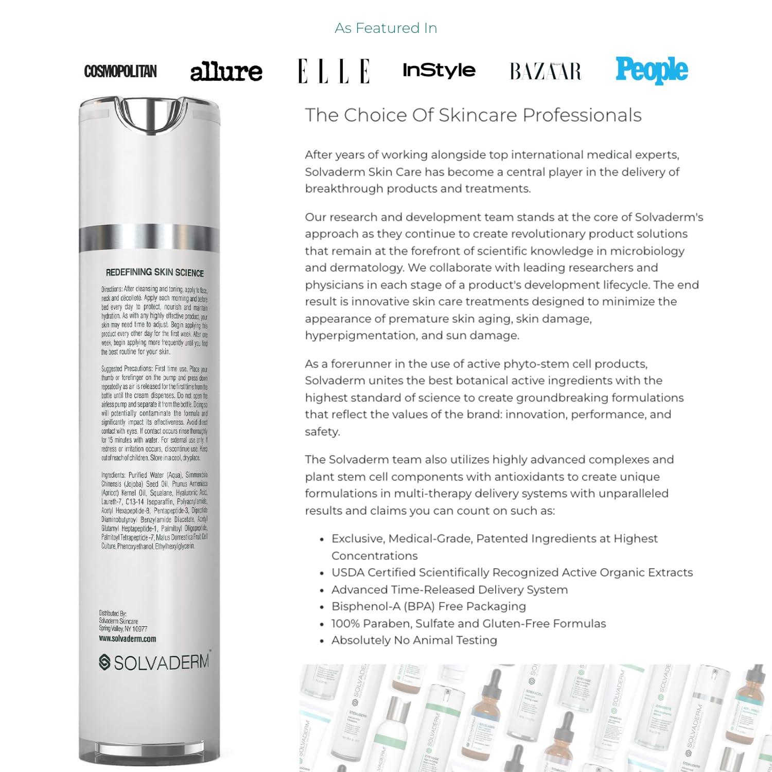 - WRINKLE REDUCTION - Infused with potent, clinically proven peptides, a cutting-edge stem cell complex, and intensely conditioning moisturizers, this professional-strength dermatological solution drastically reduces the appearance of fine lines and wrinkles, boosts the production of the skin-firming proteins collagen and elastin, and provides powerful protection against further signs of aging.