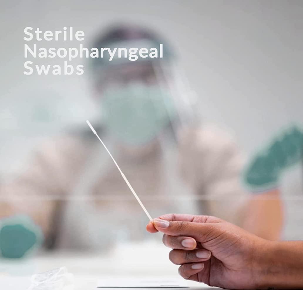 Pack of 100 Sterile Nasopharyngeal Flocked Swabs. FDA Registered Nasal Swabsticks for sample collection.