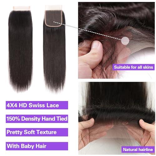- Brazilian Straight Hair 3 Bundles With Lace Closure Package:Straight Hair Weave Bundles With Closure, Human Hair Bundles With 4x4 Lace Closure Free Part Will Suitable for All Occasions, Like Wedding, Dates and so on.