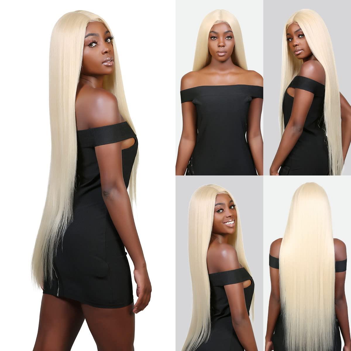 - 36 Inches Super Long Straight Lace Front Wigs Realistic Hairline Natural Looking Synthetic Wig for Women Girl Daily Wear.