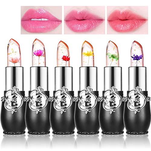 - 6 PCS CRYSTAL FLOWER JELLY LIPSTICK: Pack of 6 crystal flower jelly lipstick, choose different colors with different makeup.Can according to the temperature and humidity of lips, adjust the depth of the lip color.