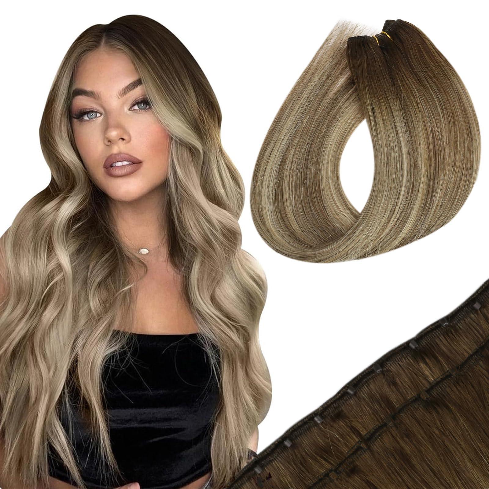 - Details of Sunny Beaded Weft ExtensionsSunny beaded weft extensions are available in a length range of 14-24 inches and a width of 12 inches, weighing 50g per set. We recommend using 1-2 packs for adding volume and 2-3 packs to cover the entire head.