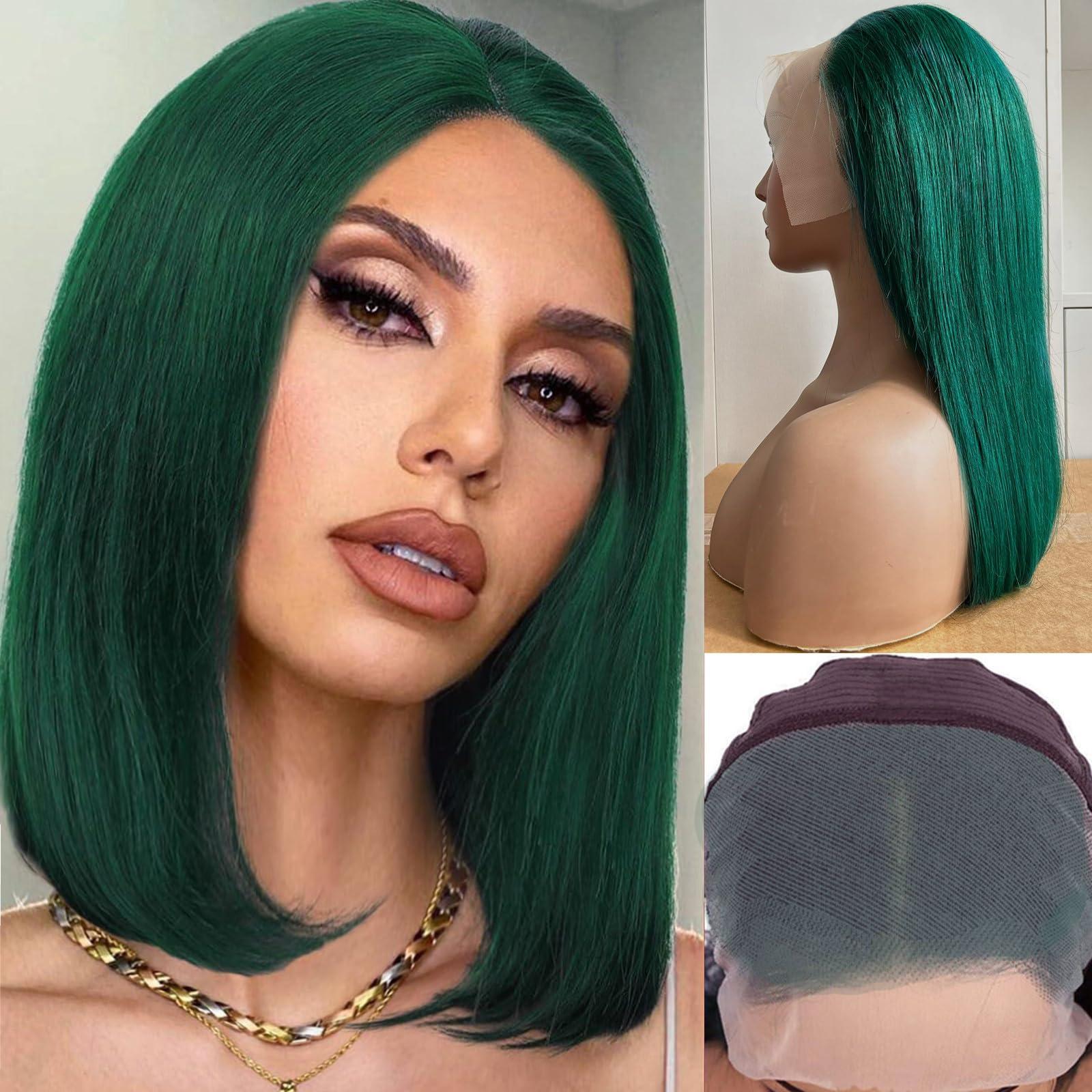 • Dark Green Bob Wig Human Hair Material: 100% Brazilian Human Hair Wigs for Black Women, Cut off from Young Healthy Donors, This Short Bob Wigs very natural and Soft, Healthy and Shiny, Can be Dyed, Bleached, and Restyled. Careful Care will Last for More Than 12 Months.