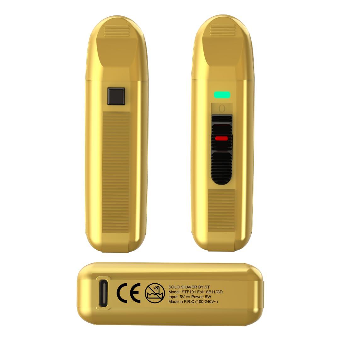 Supreme Trimmer Solo Mens Single Foil Shaver STF101 (150 Min Runtime) Cordless Powerful USB-C Mini Size Travel Razor for Barbers, & Home use | Gold