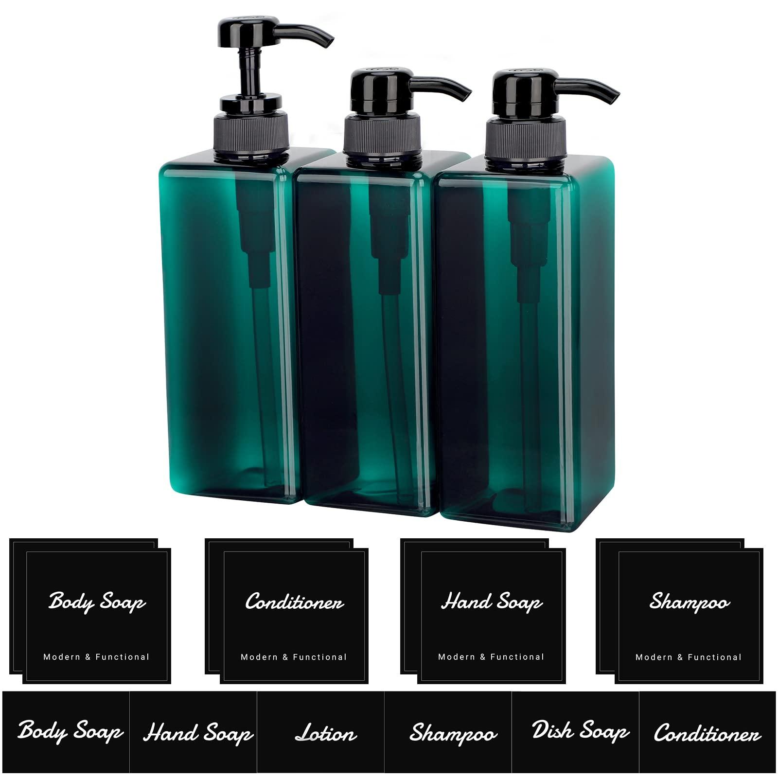 - MULTI-FUNCTIONAL - Our refillable pump bottle dispenser and waterproof stickers can be used to hold different liquids, such as shampoo, conditioner, body wash, lotion, body cream, massage oil, hair oil, liquid soap, hand soap, face wash , facial cleanser, dish soap, etc. It is suitable for daily use, bathroom, bedroom, office, kitchen sink, travel, vacation, also great for commercial use, laundry room, beauty salon, hotel, restaurant, SPA.