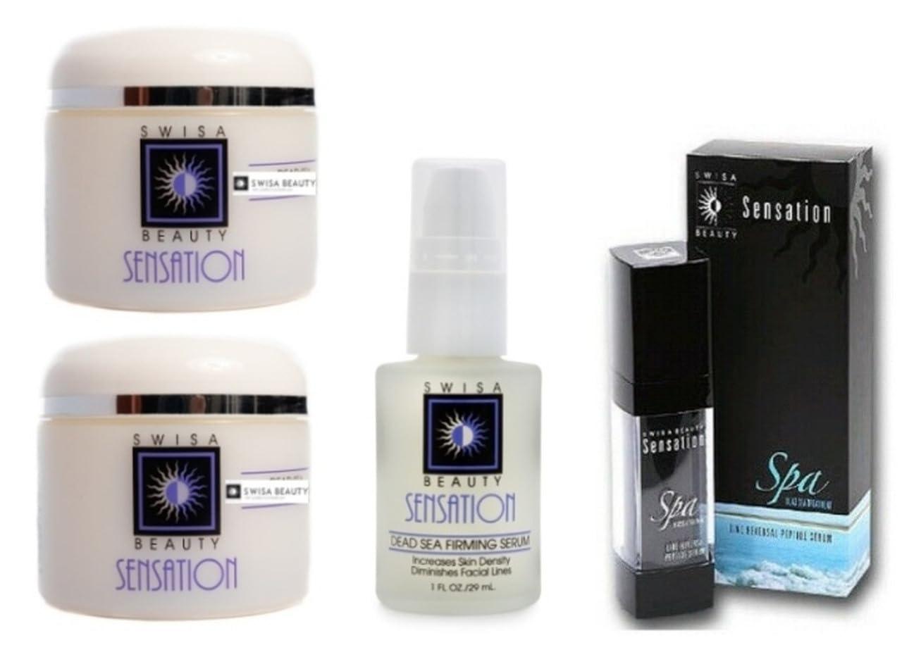 Set includes: 1.7 oz Dead Sea Facial Peel + 2 oz Dead Sea Firming Moisturizer + 8 oz Dead Sea Gentle Exfoliating Body Wash + 8 oz Dead Sea Body Butter