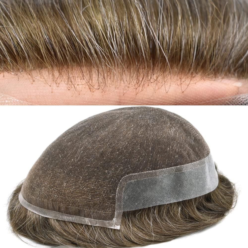 - [Hair Material]: High quality Remy virgin human hair prosthesis for men,silky,soft & smooth,no tangle,no shedding. Free Style,can be curled and straightened,styled as your own hair. 32 mm slight wave, hair length about 6 inch,don't worry about hair is too short.