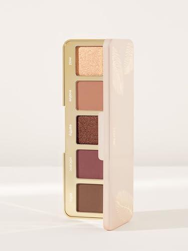 Discover the Tarte GlamazonTM to-go eyeshadow palette, a compact collection of 5 neutral and earthy shades, including mist (champagne shimmer), evolve (matte cool brown), earthy (brown shimmer), volcanic (matte maroon), and echo (matte dark cool brown). This Amazonian clay-infused eyeshadow palette offers 1 swipe color payoff and better, longer, truer wear. The lid, crease, and highlight shades allow for glam looks without guesswork, and the sleek design makes it perfect for on-the-go use. The palette includes 5 new shadow and liner shades, and the package dimensions are 3 x 2 x 0.5 inches, with a volume of 7.5 in. To create stunning eye makeup looks, apply the eyeshadows using recommended uses for product as guideline.