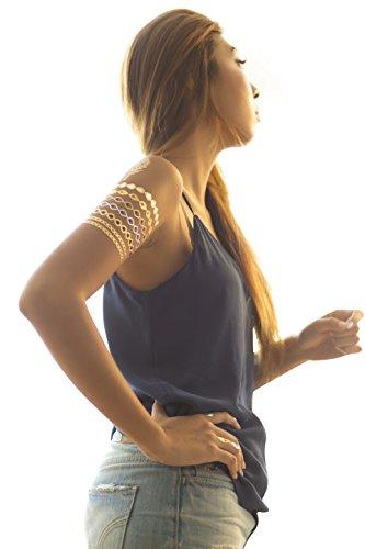 Accessorize your skin with these metallic body art temporary tattoos. Ideal for Halloween, the beach, parties, concerts, music festivals, and more, these innovative and non-toxic tats are applied in just a few minutes using water and can last for up to 3- 6 days. The gold and silver are true to color. Funny tattoos for girls.