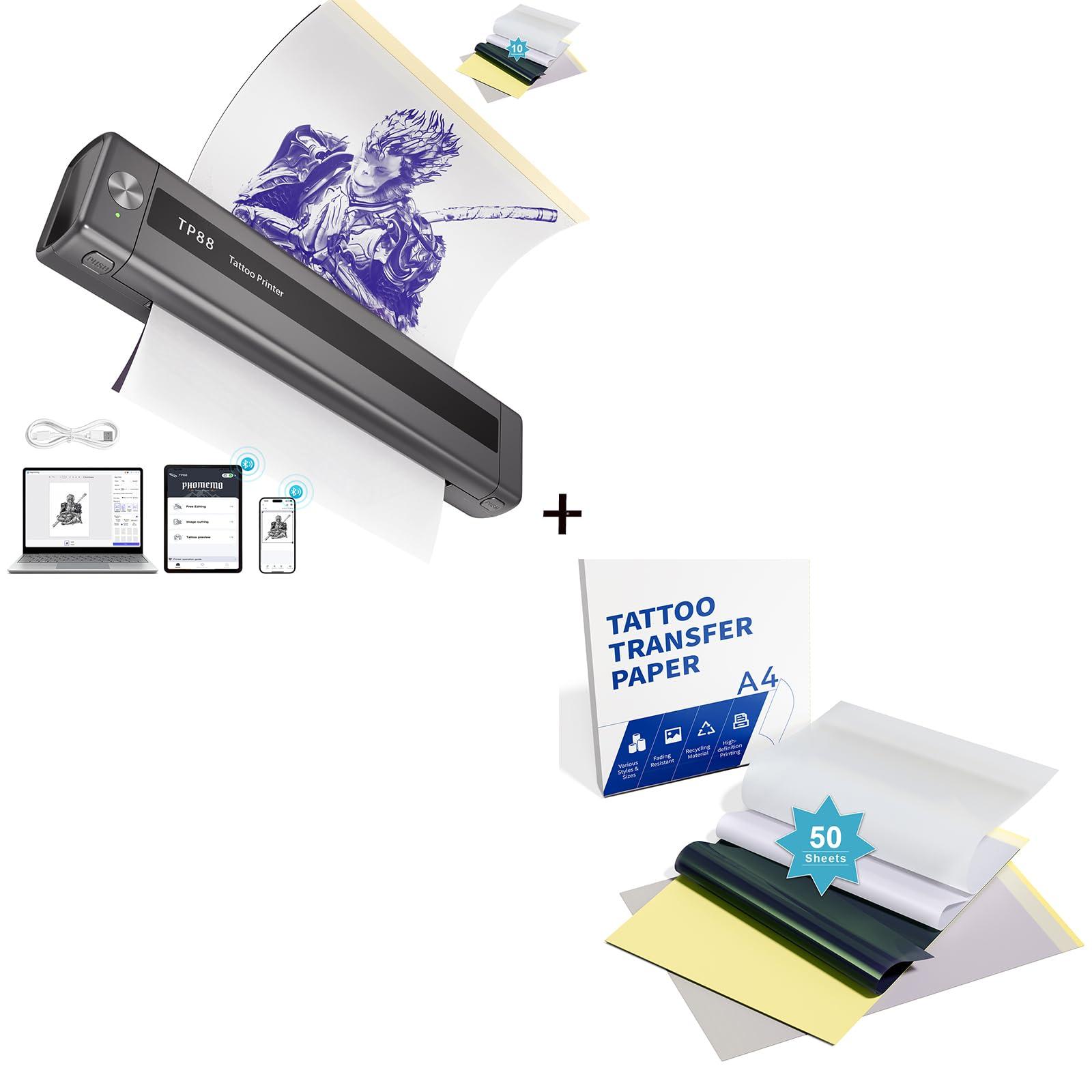 The combination is a TP88 Bluetooth Tattoo Stencil Machines + 50 Sheets Tattoo Transfer Paper(8.5" x 10.98" Letter Size)