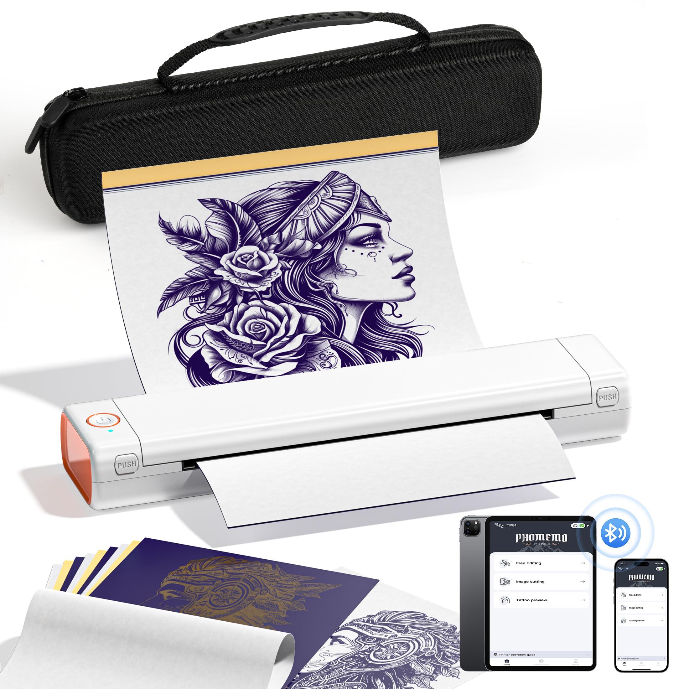 - Light and Portable - Bluetooth inkless tattoo stencil printer bulit in 1200mAh rechargerable, full charge can print 140 sheets transfer paper.This wireless tattoo transfer copier machine only 2lb, can carry it into backpack or breficase easily,showing your tattoo art all over the world anywhere and anytime