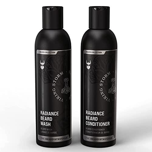 The Beard Struggle - Radiance Beard Wash & Conditioner Bundle - Silver Collection - Pack of 2, Viking Storm - Nourish, Cleanse, Softens, & Strengthens Beard - Beard Wash and Conditioner for Men
