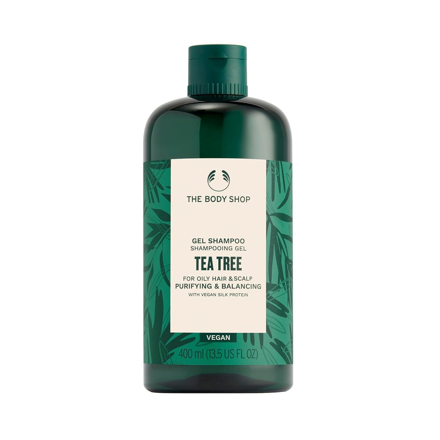 Refresh oily locks with our Tea Tree Purifying & Balancing Gel Shampoo. Certified by The Vegan Society and made with 93% ingredients of natural origin, including organically-grown Community Fair Trade tea tree oil from Kenya, our super shampoo leaves oily hair and scalps feeling cleansed, purified and invigorated. It even helps rebalance excess oils without stripping locks of their essential moisture. Made with Vegan Silk Protein, use this seriously refreshing shampoo as part of our 3-step Tea Tree routine to help repair hair from the inside out. Our shampoo also comes in bottles made with 100% recycled plastic, including Community Fair Trade recycled plastic collected off the streets of Bengaluru, India, so it does good for your do and your planet. Achieved using full regime of shampoo, conditioner and scrub. Visibly repairs hair. Hair scrub coming soon. Stay tuned for availability. Lid not made with recycled plastic. Purifying and balancing shampoo Perfect for oily hair and scalp Leave hair feeling cleansed, purified and refreshed Leave oily scalps feeling balanced Smell seriously fresh and clean Made with 93% ingredients of natural origin Certified by The Vegan Society
