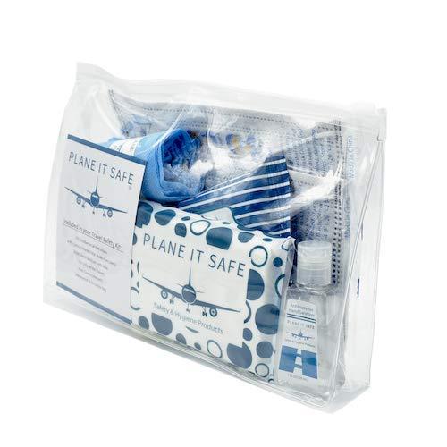 Plane It Safe - The Original TSK (Travel Safety Kit) is the perfect travel essentials kit protecting you from head to toe. Each kit includes: (2) 4-Ply Carbon Filtered Face Mask - designed to protect you from poor recycled air and sick passengers. (1) Booties/Foot Covers - No more barefoot through TSA security. It's Bootie Time! (1) 29mL Antibacterial hand sanitizer with Aloe (1) Pack of (10) Antibacterial Wet Wipes - perfect for wiping down tray tables, seats, air vents, in-flight entertainment systems, seat belts, windows, anything that touched the luggage bins and of course your hands. (1) Pack of (10) soft 3-Ply Facial Tissues (1) TSA compliant carry-on quart-sized clear resealable bag. Size: 9 x 6 x 1.5 The Original TSK by Plane It Safe - Travel Safety Kit is the ultimate travel accessory to protect you and your family anywhere you go. It's OCD approved and the perfect travel kit to Grab & Go. Travel Healthy - Arrive Refreshed
