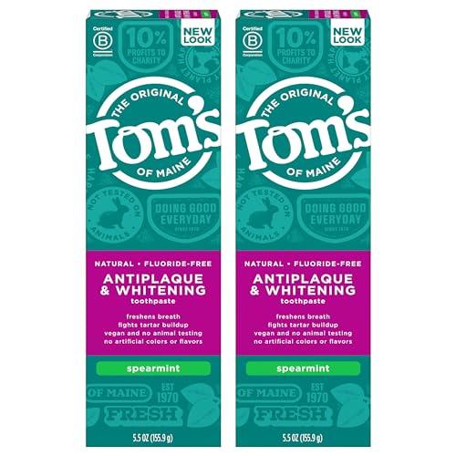 - WHAT YOU'LL GET: Two 5.5-ounce tubes of Tom's of Maine Natural Fluoride-Free Antiplaque & Whitening Toothpaste in Spearmint Flavor