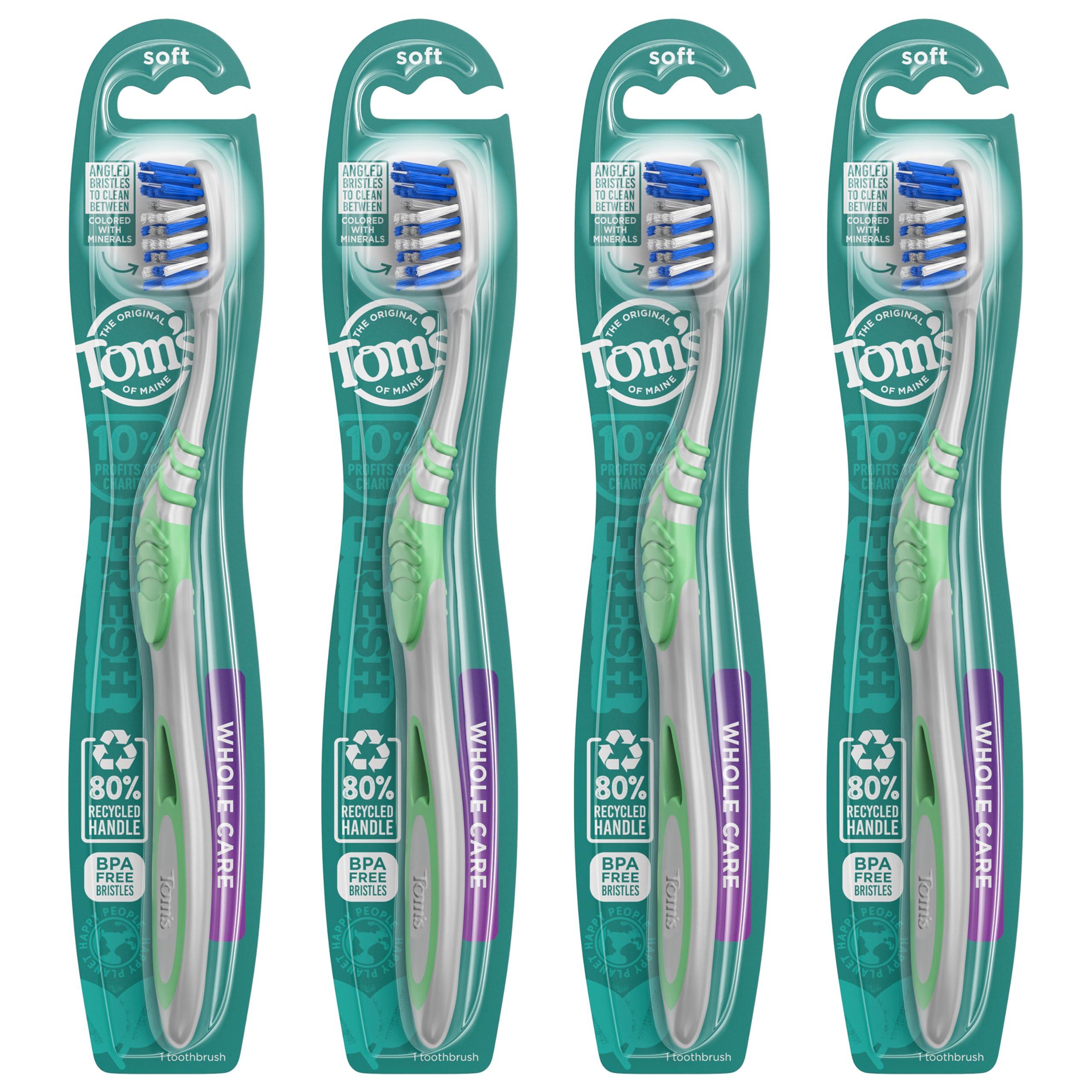 - WHAT YOU'LL GET: Contains four Tom's of Maine Whole Care Natural Toothbrushes with Soft Bristles