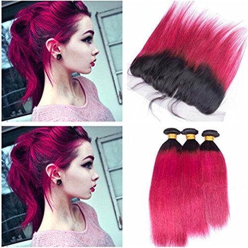 - 3)Color:#1B/Hot Pink Ombre Hair Bundles with Lace Frontal