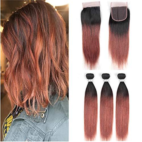 - 2)Texture:Straight Copper Red Ombre Hair Bundles with Closure,Dark Auburn Ombre Weave Wefts