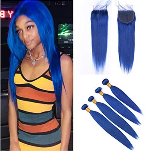 Tony beauty hair Tony Beauty Hair Dark Blue Brazilian Straight Weaves Human Hair 4 Bundles and Closure Pure Blue Virgin Hair Closure with Bundles Navy Blue Hair Extensions with Lace Closure (12 12 12 12 with 10)