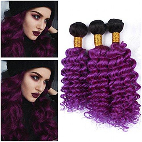 Tony Beauty Hair Dark Root Purple Ombre Virgin Brazilian Human Hair Bundle Deals Deep Wave 3Pcs Lot #1B/Purple Ombre Brazilian Virgin Hair Wefts Wavy Human Hair Extensions (10 10 10)