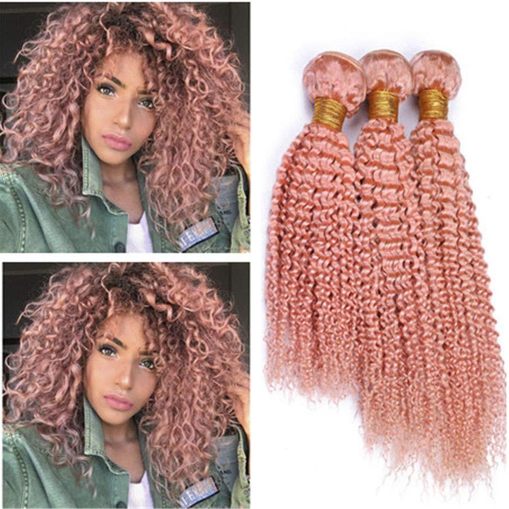 Tony Beauty Hair Kinky Curly Pink Human Hair Weave Bundles Pure Pink Malaysian Curly Virgin Hair Extensions Light Pink Kinky Curly Human Hair Wefts 3/4 Bundles Lot Mixed Length (12 14 16 18)