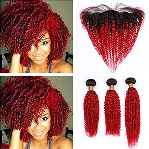 - 2)Texture:Kinky Curly Red Ombre Virgin Hair Weaves with Frontal Closure