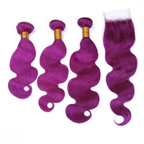 - 3)Color:Pure Purple Virgin Hair 3 Bundles with Lace Closure Body Wavy