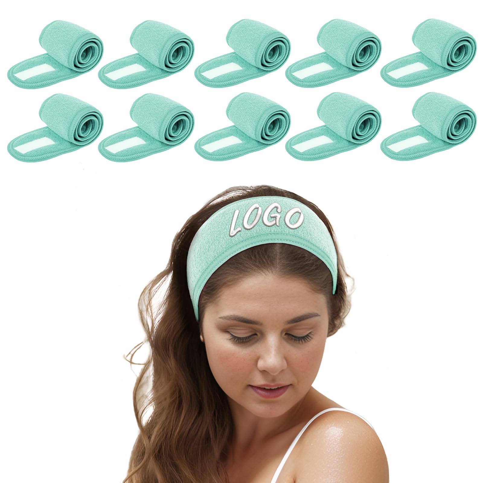 TopTie TopTie 10PCS Custom Spa Facial Headband Terry Cloth Skincare Head Wrap, Embroidery & Heat Transfer for Light Green Headband