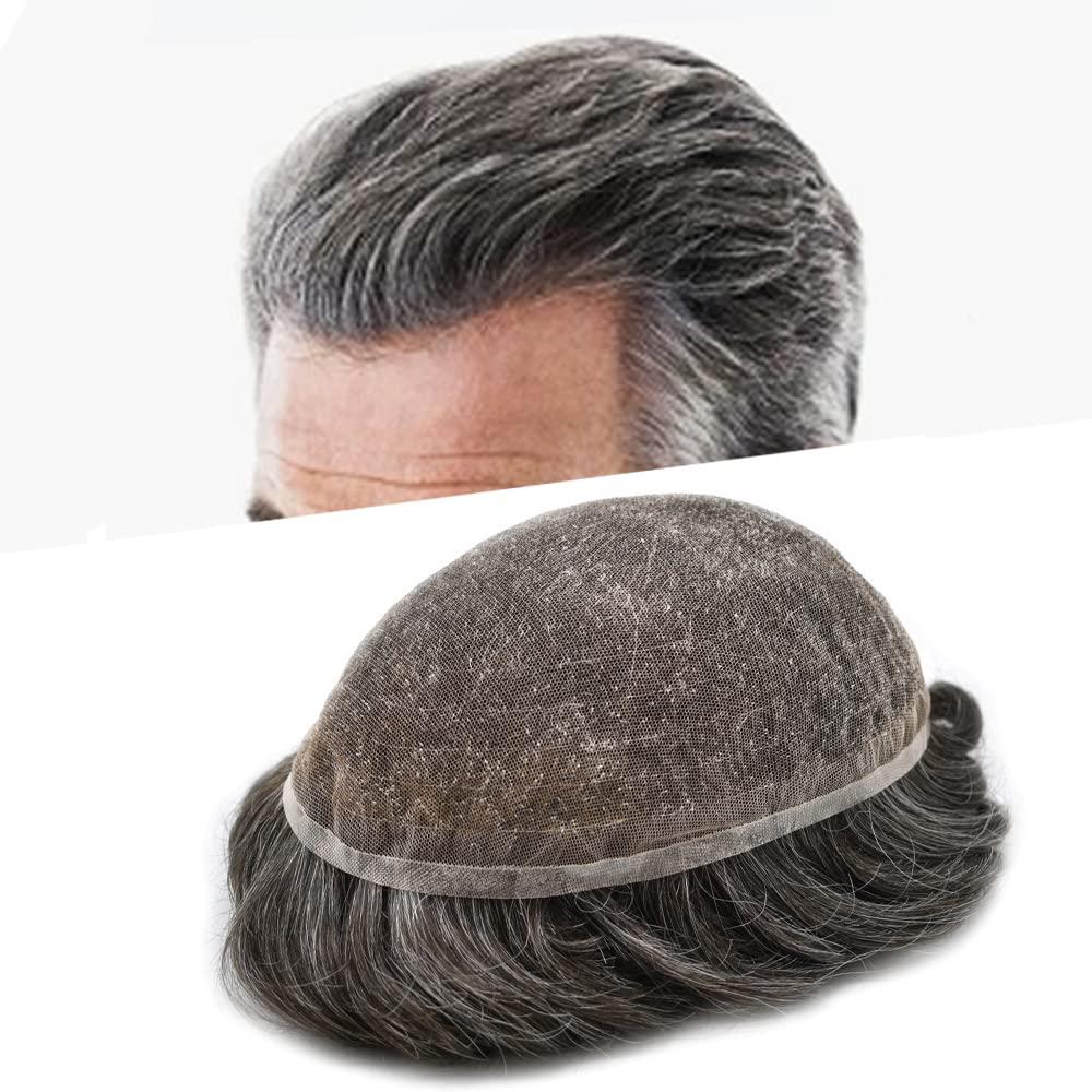 - Material:6" High Quality 100% European Virgin Human Hair mens toupee ,grey hair uses synthetic fiber.Full Soft French Lace Toupee for Men with Glueless Pink Base,Bleached Knots, Natural Hairline,looks more Natural just as the hair growing from your scalp.
