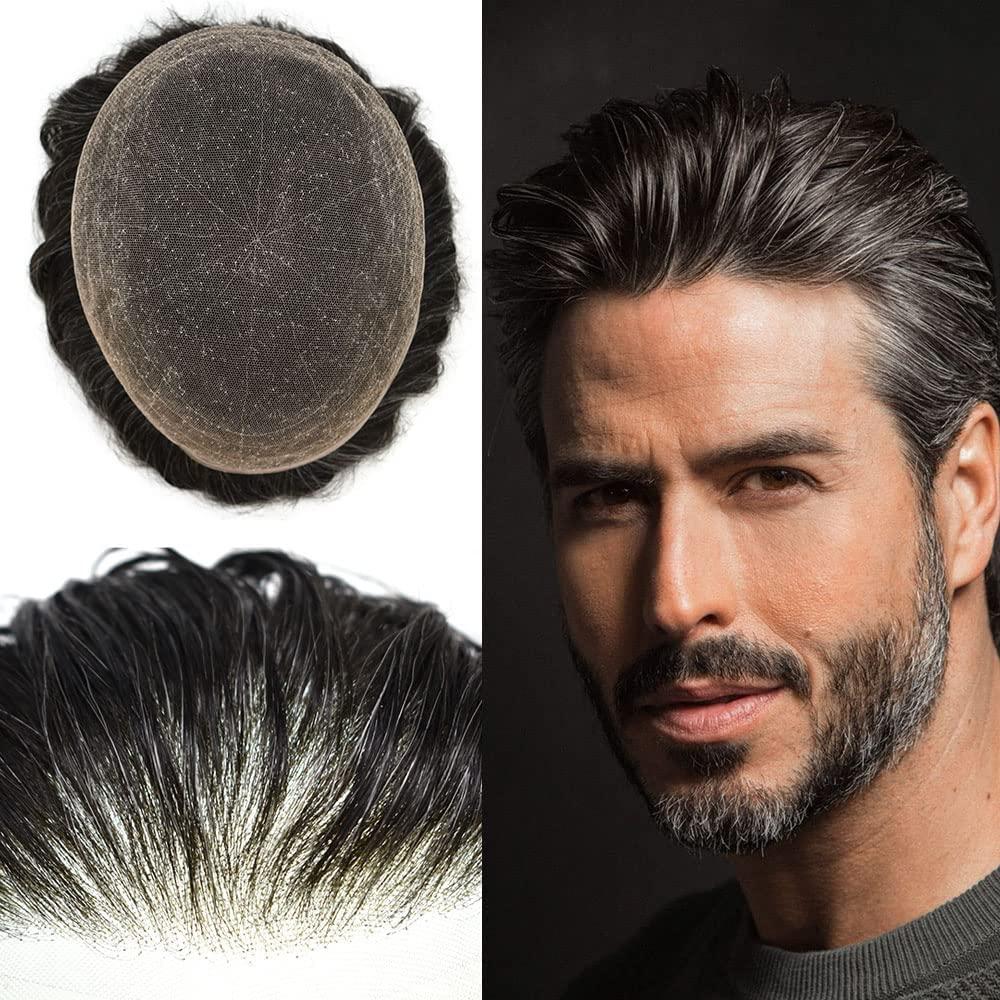 Hair Wonders Toupee For Men Real Human Hair Mens Toupee Hair Replacement System Swiss Lace Hair Piece For Men Hair System6x9\"-100% light to medium density1# JET BLACK