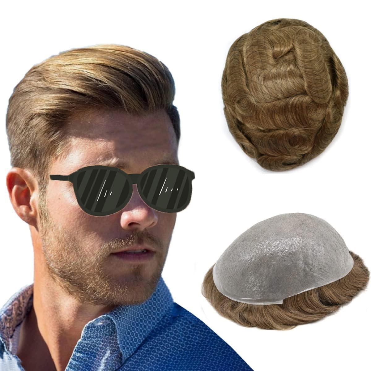 - Mens toupee human hair use full thin skin poly ,thickness is 0.06mm light and comfortable,Easy to wear and clean.Mens hairpieces looks so natural,its not only soft and smooth but also not easy to knot or lose hair. Easy to Style and trim.Black color, Brown color, Blonde color, Ash color, and Gray color are both available. White hair is synthetic fiber.