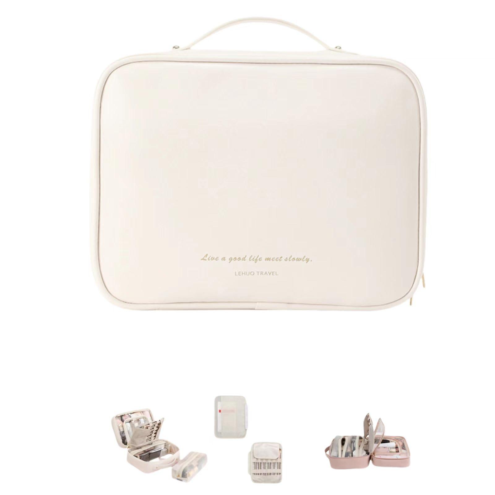 - Travel Makeup BagTravel cosmetic bag have multi-compartment double-layer waterproof design with a large capacity, which can hold all the cosmetics and makeup tools you need. Women who enjoy traveling no longer need to worry about having too many cosmetics.