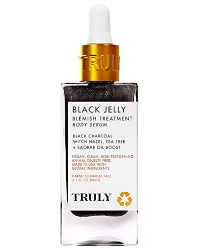 - Lightweight and quick-to-absorb, this powerful body serum harnesses the deep cleansing powers of witch hazel, tea tree and black charcoal to target and quell inflammation of active breakouts while helping with acne scars without being overly drying!