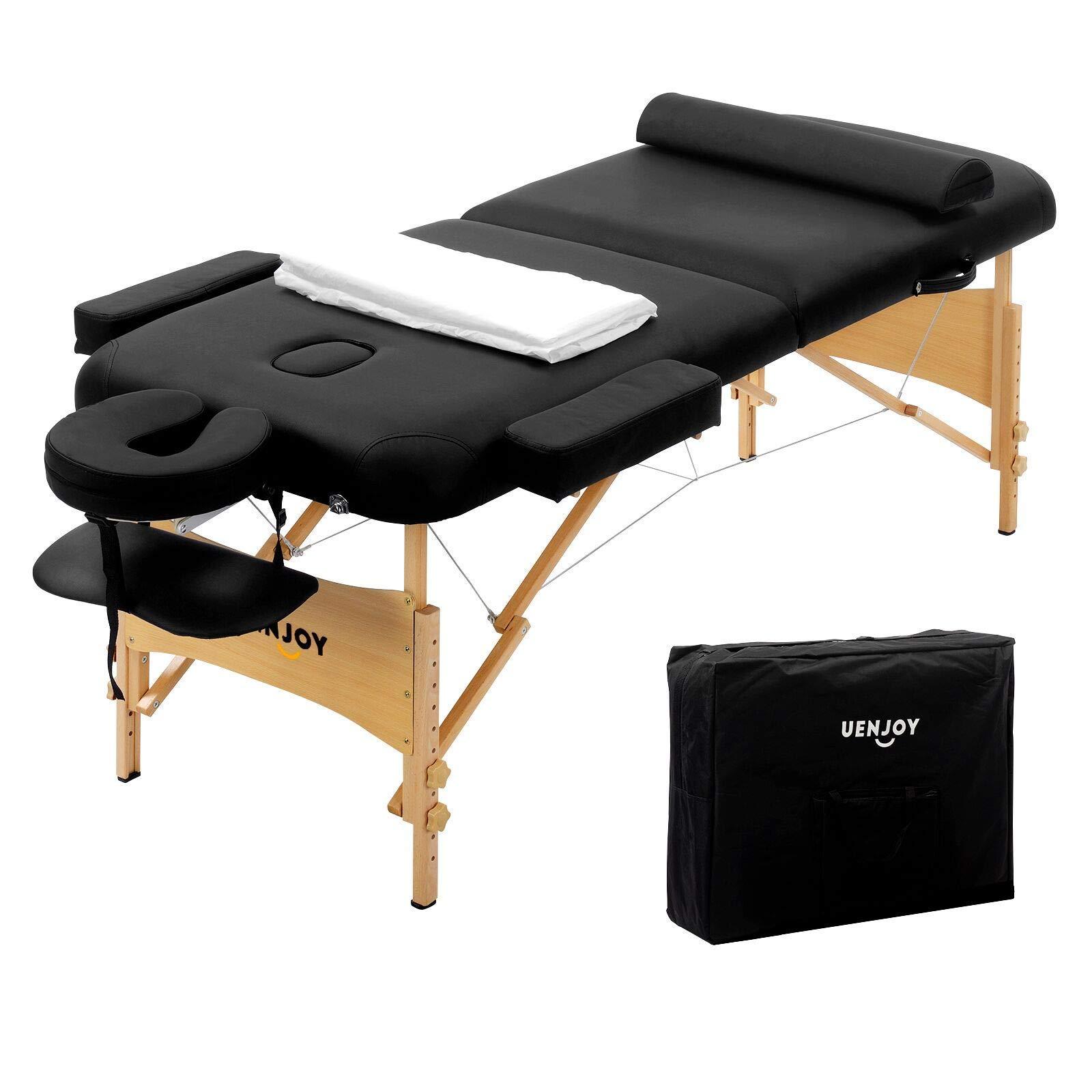 Uenjoy Massage Table 84'' Professional Folding Massage Bed Deluxe Model with Extra Width, Ultra-thick Sponge, PU Leather Surface & Additional Accessories, 2 Fold, Black