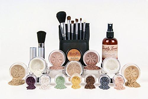 This Kit Includes: 6 Full Size jars of Mineral Makeup: Foundation, Concealer, Bronzer, Sweet Cheeks Blush, Veil Primer and Finishing Powder Sweet Face Minerals products are all natural, full coverage and very lightweight. These are 20 gram sifter jars that are filled to capacity with 9 grams of powder inside each one. 1 Yellow Corrector 1 Green Corrector 5 Eye Shadows: Drastic Eye Shadow: Drastic is a deep rich purple color full of beautiful shimmer. Sensuous Eye Shadow: Sensuous is a rich sexy shade of gray full of beautiful shimmers and silver hues. Snuggle Eye Shadow: Snuggle is a rich peachy pink color full of beautiful shimmer. Devious Eye Shadow: Devious is a rich dark copper brown color loaded with sexy shimmer. Optimism Eye Shadow: Optimism is a rich white color full of beautiful sparkling shimmer. The Correctors and Shadows are 5 gram jars filled to capacity with 2 grams of powder in each one. 1 Retractable Makeup Brush:This brush is the perfect tool to take on the go! Its stylish, compact and the lid protects the bristles, which are made of premium hair. Brush color may vary depending on stock. Brush Set with Protective Case:All in a neat black matte carrier which fits perfectly in your make-up bag. Aloe and Cucumber Hydrating Mist and Makeup Setting Spray:Use this amazing Hydrating Mist to set your makeup in place or use as a facial pick-me-up throughout the day. Our Hydrating Mist smells crisp and feels so refreshing on the skin. Hydrating the skin is very important and our Aloe and Cucumber Hydrating Mist is perfect for every skin type. This is a 4 oz Bottle.