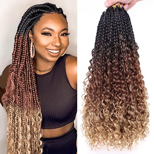 Product Name:Messy goddess box braids with curly ends,18inch bohemian crochet box braids hair.Hair Color: 1B#, T30#, TBUG#,27/613#,Boho box braids hair. Weight&Roots: