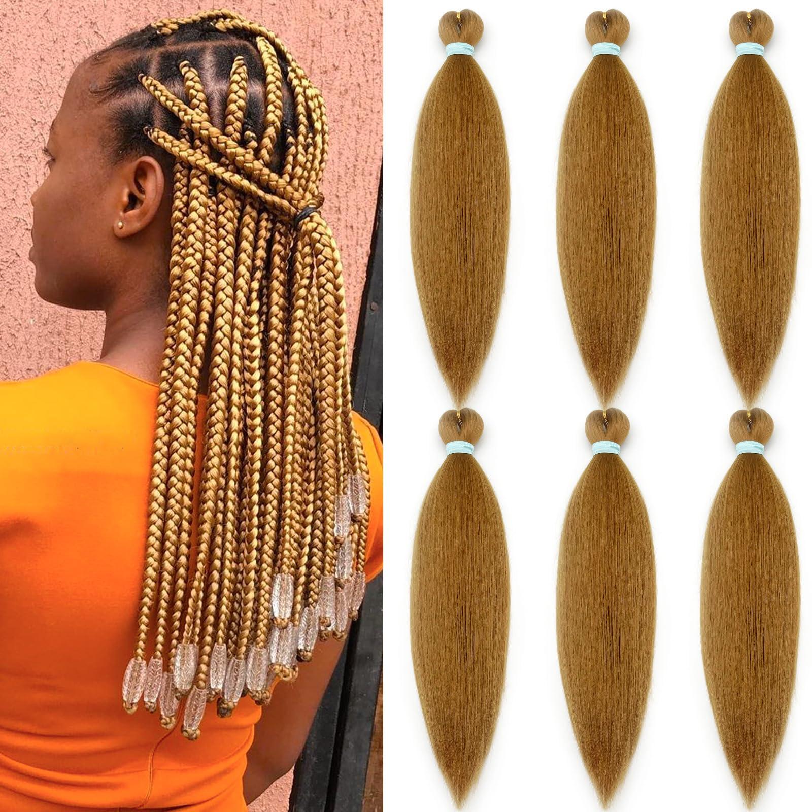 - Color 27 Braiding Hair Material: Honey Blonde Braiding Hair Pre Stretched Is Made By High-Quality Flame-Retardant Synthetic Fiber, Feel Soft As Human Hair For Braiding.