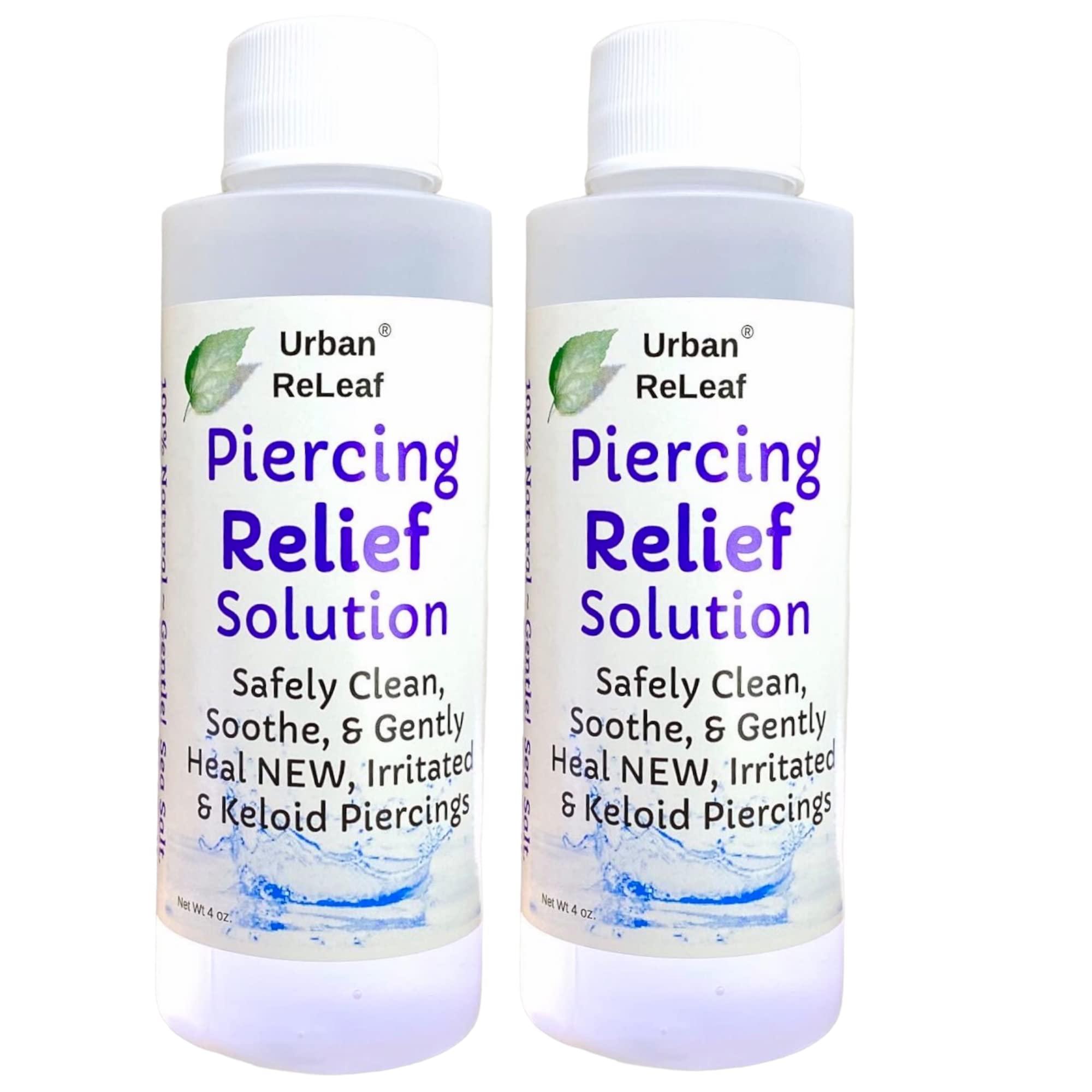 - PIERCING RELIEF Solution - the natural solution to AFTERCARE! Ready to use, 4 oz. Medicated Sea Salt soaks are the best thing you can do for a new, irritated or bumpy piercing. PIERCING RELIEF Solution - the natural solution to AFTERCARE! Works fast to soothe the 'red and angry' feeling in new piercings.