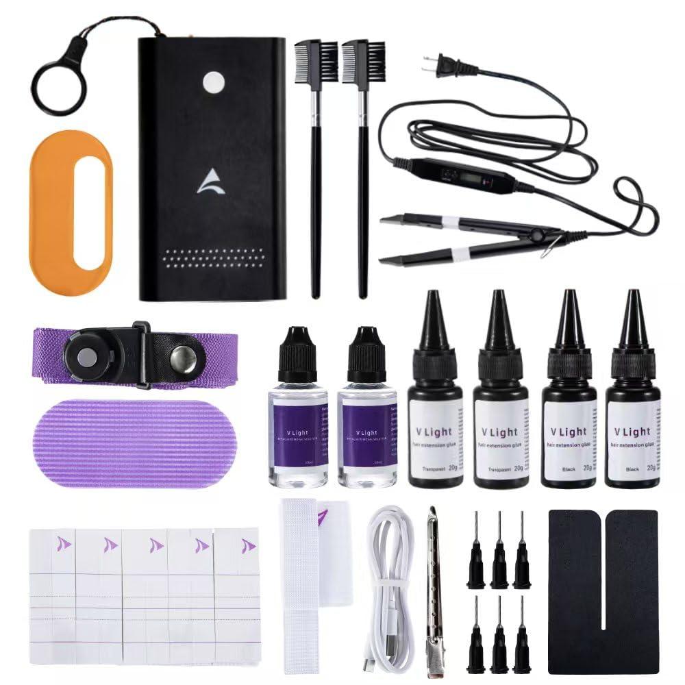 - Package: V-light extension machine * 1, V-light extension remover machine * 1, Wig extension comb * 1, V-light black glue 20g * 2, transparent glue 20g * 2, light glue remover solution 30ml * 2