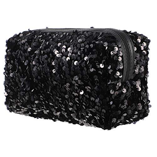 - FASHIONABLE SEQUIN DESIGN: The sequin cosmetic bag is made of black sequin material, which is not only fashionable and generous, but also shines charmingly under the light, adding a bright for your travel