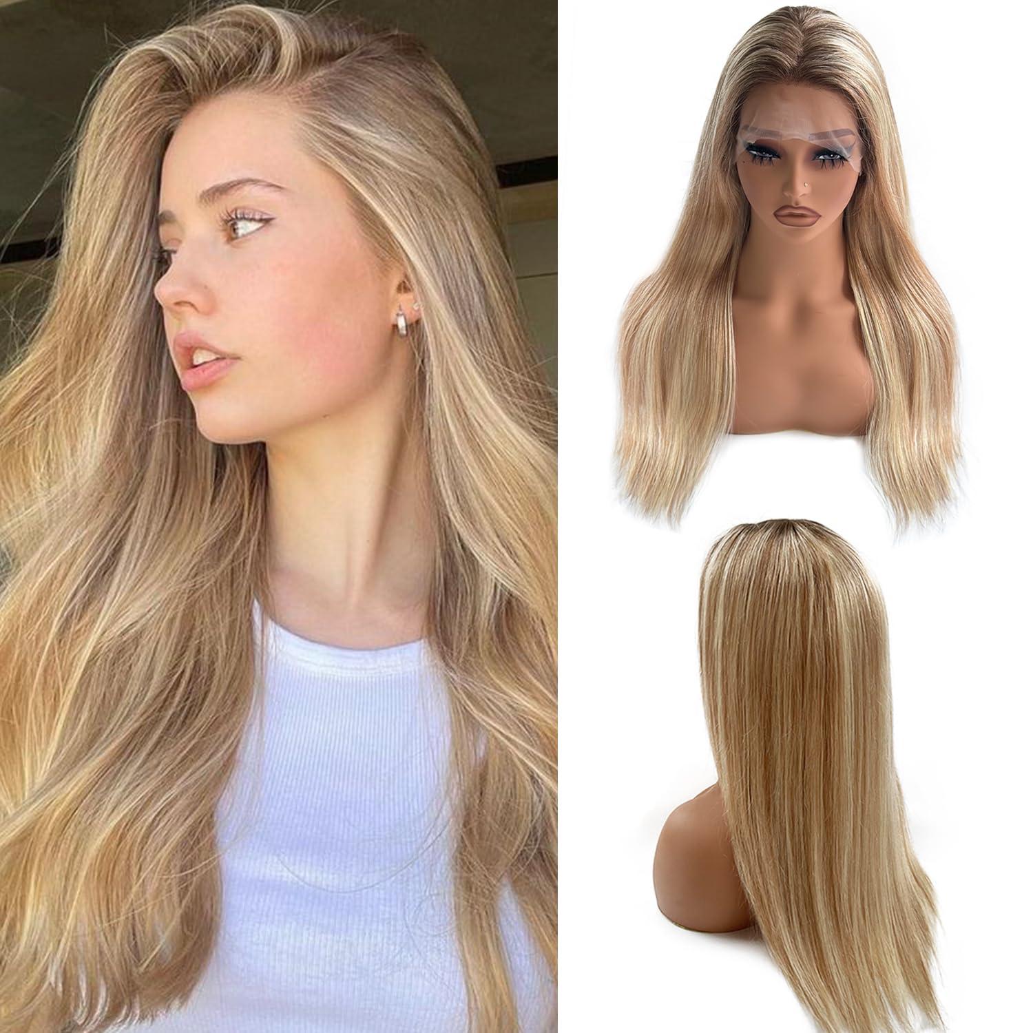 - Quality Long Straight Wig Human Hair 13x4. Ombre blonde wig human hair pre plucked natural hairline. Soft&durable with invisible bleached knots match all skin color well.