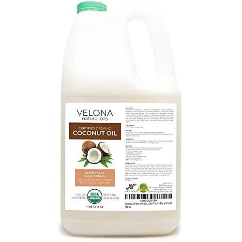 - 100% PURE & NATURAL USDA Certified Organic Extra Virgin Coconut Oil; Non GMO; Extra virgin; Expeller-pressed from the dried flesh, (copra), of the coconut palm fruit