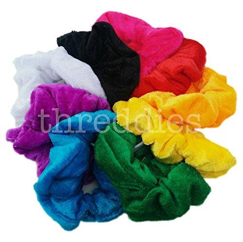 Set of 9 velvet scrunchies in the color assortment of your choice (or all in basic black). You will receive the exact colors shown in the assortment that you choose. Soft, comfy, essential!
