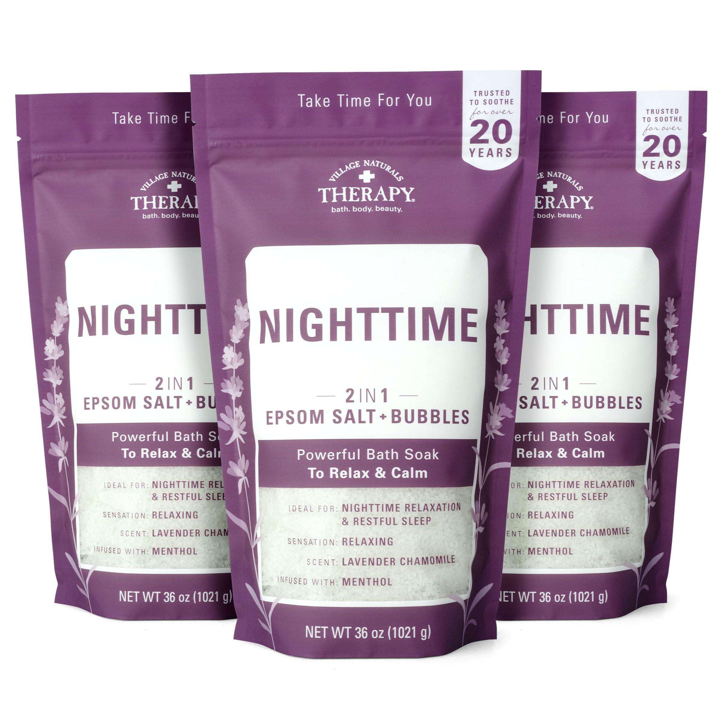 - POWERFUL INGREDIENTS: The Aches & Pains Nighttime Relief Foaming Soak is formulated with key ingredients that can help you unwind at the end of a long day. Let the calming qualities of Lavender, Chamomile and Menthol relax your muscles and prepare you for a good nights rest. The combination of Sea Salt and Epsom Salt helps to draw out impurities and ease aches and pains.