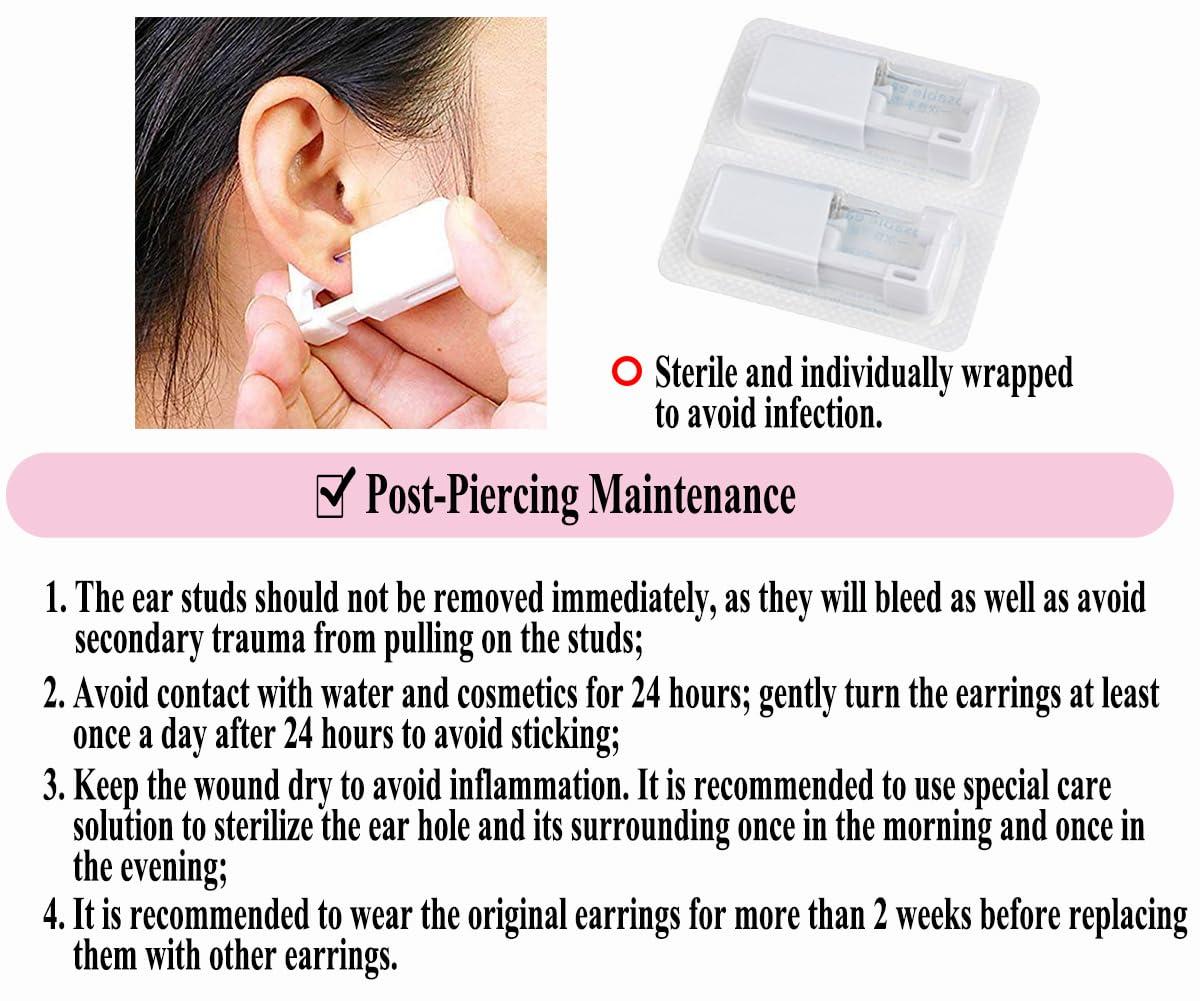 - Safety and ComfortThis ear piercing kit ear piercing gun comes in an individually sterile sealed package for single use, and the studs are made of high quality 316L stainless steel and CZ to avoid the risk of infection or allergy. Let you use more peace of mind