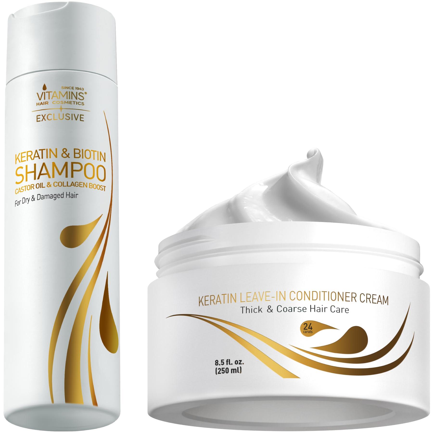 Get the Instant Salon Perfect Hair of Your Dreams! This Value Pack Includes 1 Keratin Shampoo for Extra Clean Luminous Blowout Look & 1 Thick & Coarse Hair Ultra Hydrating Keratin Leave-In Conditioning Cream.