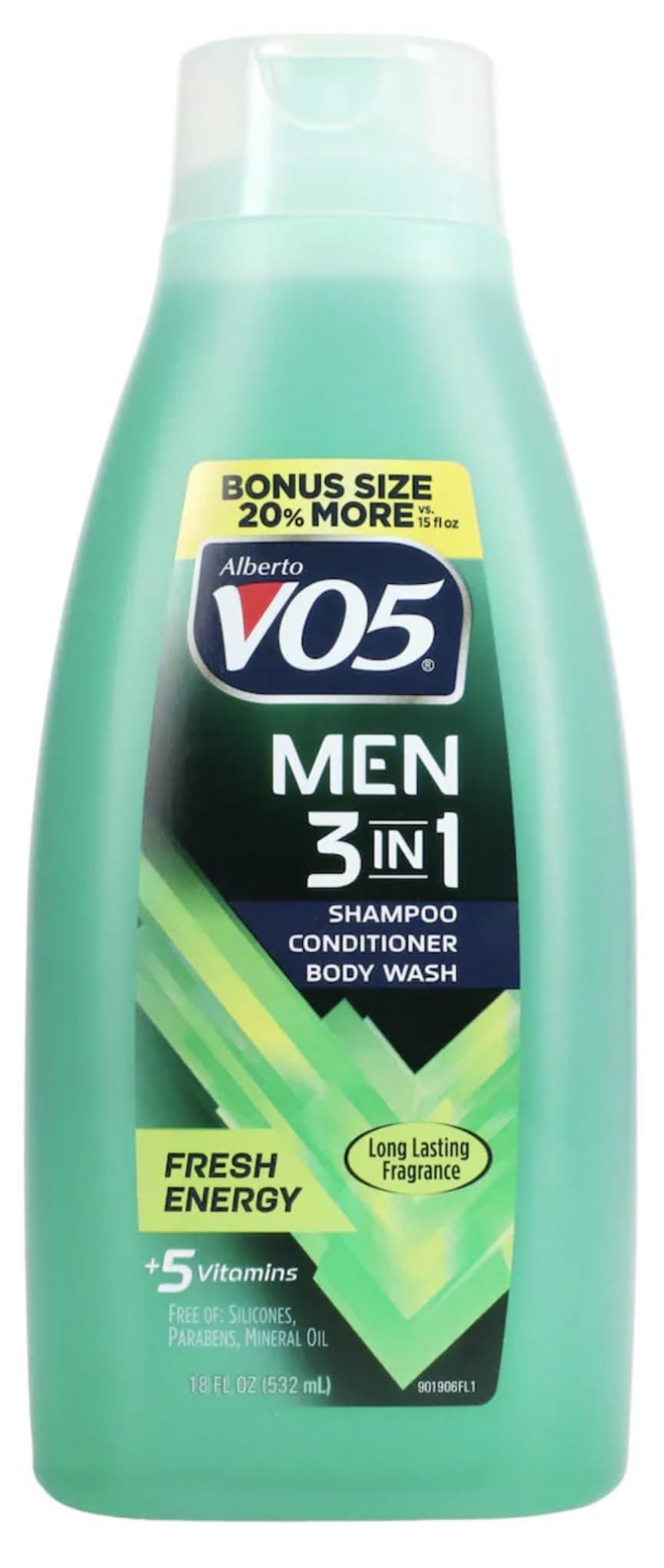 VO5 Men 3 in 1 Shampoo, conditioner and Body Wash, Fresh Energy 18 Fl OZ (Pack of 2)